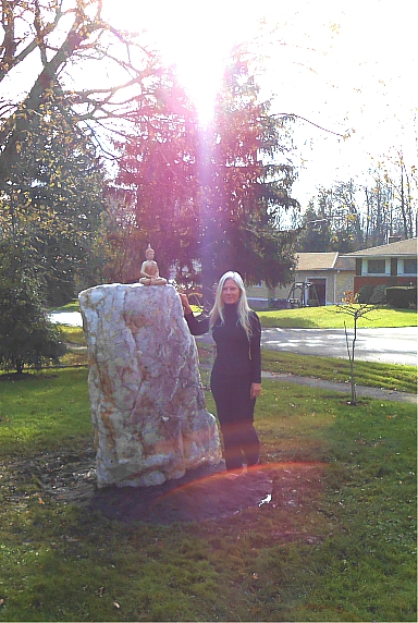 Lucy’s new partner, geomancer Alan Reed, gave her a 3,000-pound quartz crystal, strategically placed on a beneficial underground water crossing on her front lawn. Some will say the unexpected column of light engulfing Lucy in this photo is just lens flare. Lucy sees it differently.